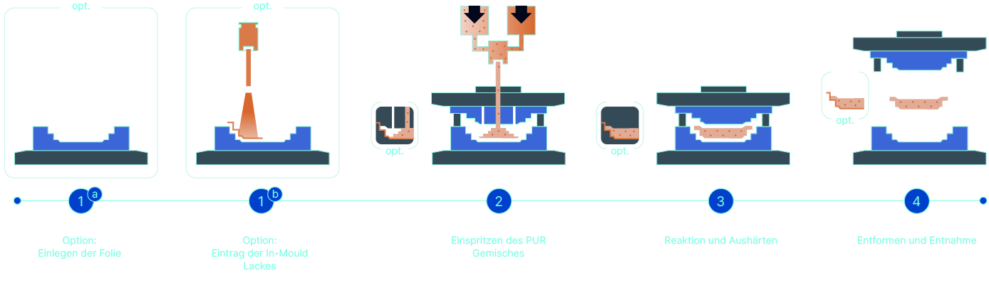 RIM (Reaction Injection Molding) bietet bei Jahresstückzahlen bis 5.000 Stück attraktive Life-Time-Kosten durch langlebige Materialien und effiziente Produktionsprozesse.Sie ermöglicht große Designfreiheit für komplexe und individuelle Formen sowie Oberflächen. Niedrige Werkzeugkosten machen die Produktion wirtschaftlich attraktiv. Zudem können matte und textile Oberflächen erzeugt werden, die sowohl optisch ansprechend als auch funktional sind.